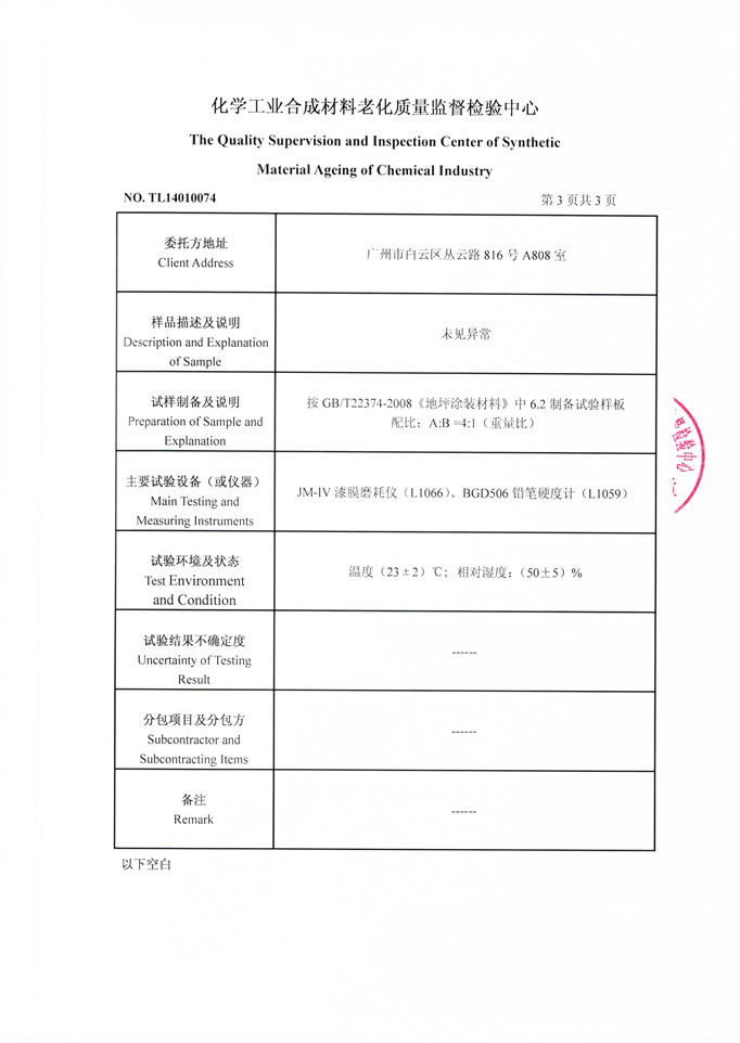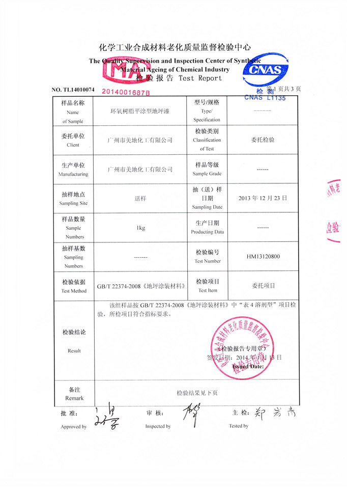 環(huán)氧自流平地坪漆檢驗證書
