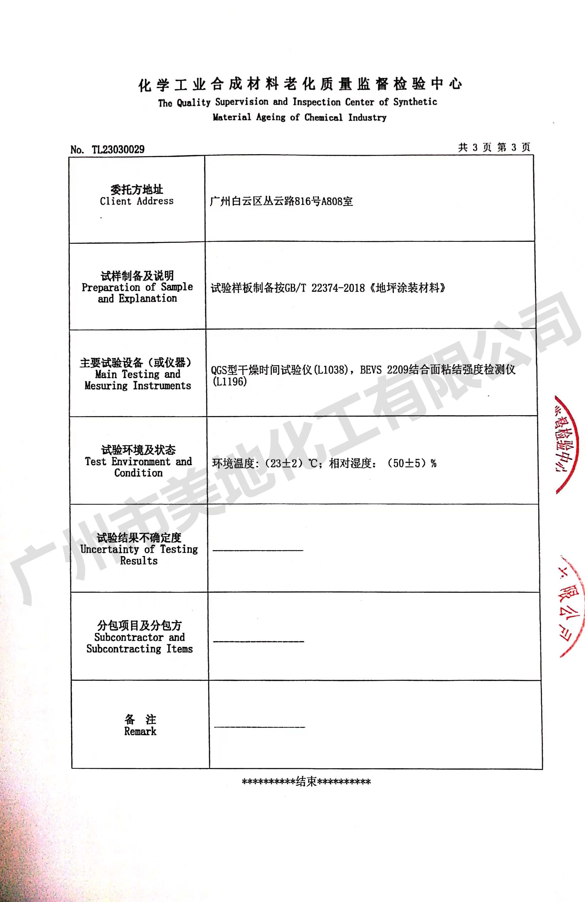 環(huán)氧自流平地坪漆檢驗證書